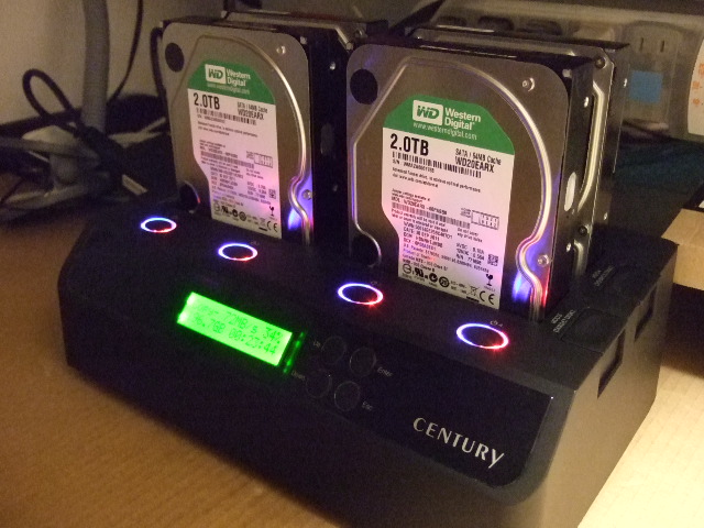 ・このような機器でクローン作成の作戦。2TB×2はもちろん、消えてしまった320GBへも同時にコピー (所要時間:コピー1.5h、ベリファイ1.5h…さすがにかなり速い)
