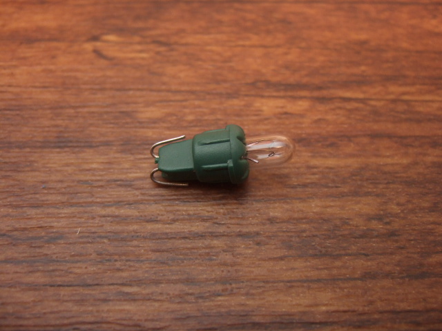 今時LEDやないのが商品として存在するんですねぇ。ともかく調べてみたら、思った通り一つが物理的に破損してました。また都合がいいことにソケット形状になってたんで、手持ちの適当な球をあてがってみたところ 無事全点灯するようになりました。