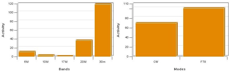 そしてこちらが、昨秋のWWCW後からのQSO数。上述の通りFT8はここ一ヶ月の30mのみなんですが、世間のアクティビティの違いがよく分かります。しかし…FT8は真面目にやると画面から全く目が離せないので、結構疲れますね。これがCWなら、ゆっくりスキャンさせておけば他のことができるんですが。