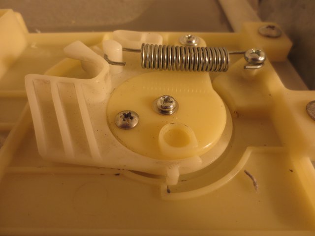 常にバネの力がかかるのに、こんな薄い樹脂部分にそれを受けるビス立てたらあきませんよねぇ