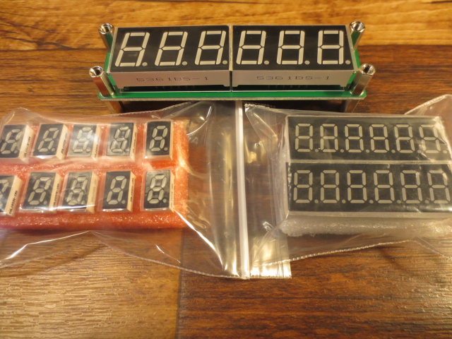 一つずつのがいい表情してるし小さいしでいいんですが、残念ながらユニバーサル基板だとぴったりつけて並べられず間延びするので、次善の策として6桁のものでいってみることに。