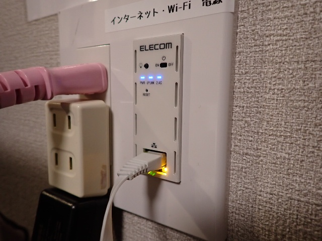 ・ネット(写真)は有線もあり、普通に快適。Wi-Fiは部屋ごとに個別SSIDの模様(使ってないので詳細不明)