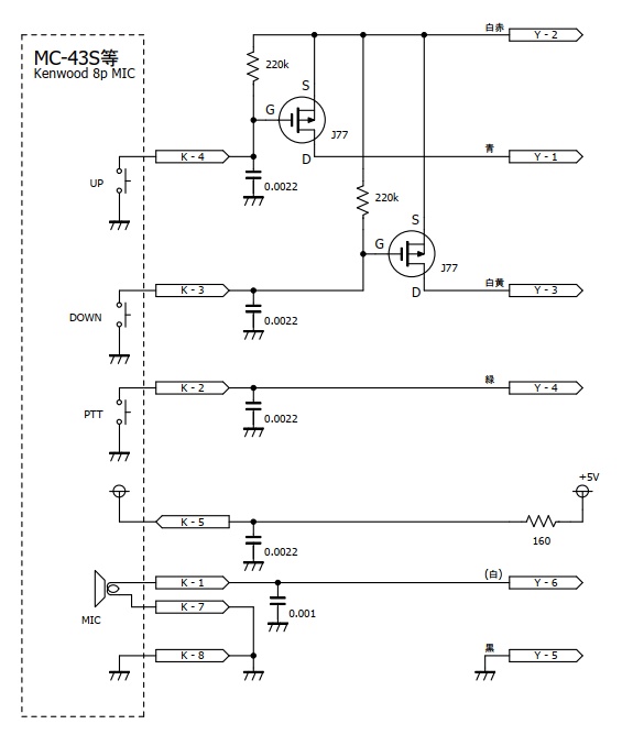 ところで、この機械を普通に使うだけなら別に4ピンでも良かった(でも前から外すタイプのジャックは持ってませんが)のになぜ8ピンにこだわったかといいますと、この機種スキャンが速いのにそのスキャン機能がマイクのUP/DOWNからしか使えないからなんです。