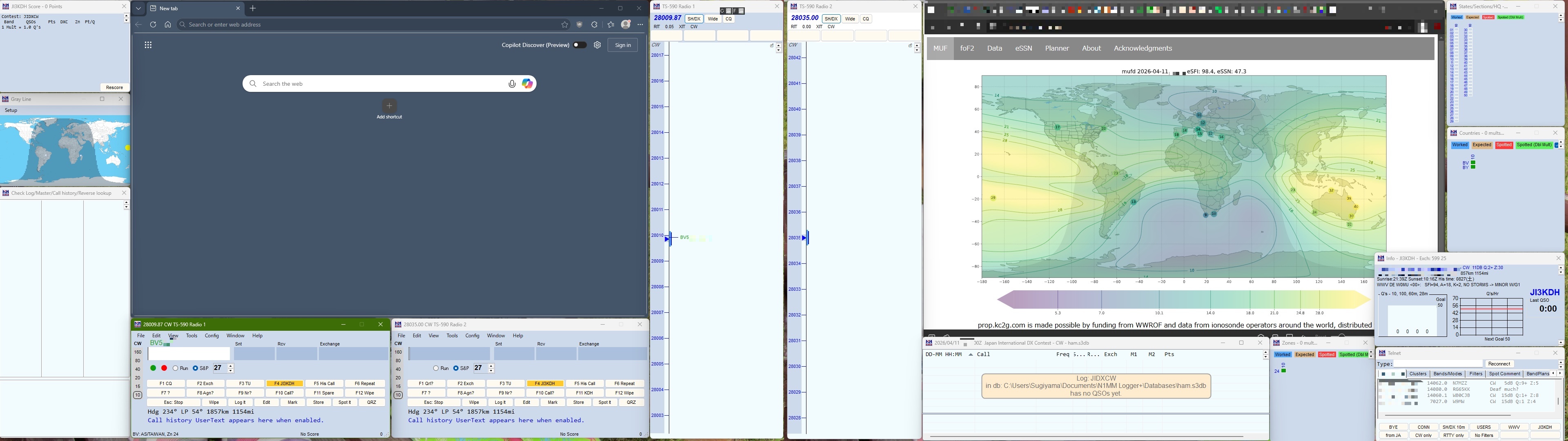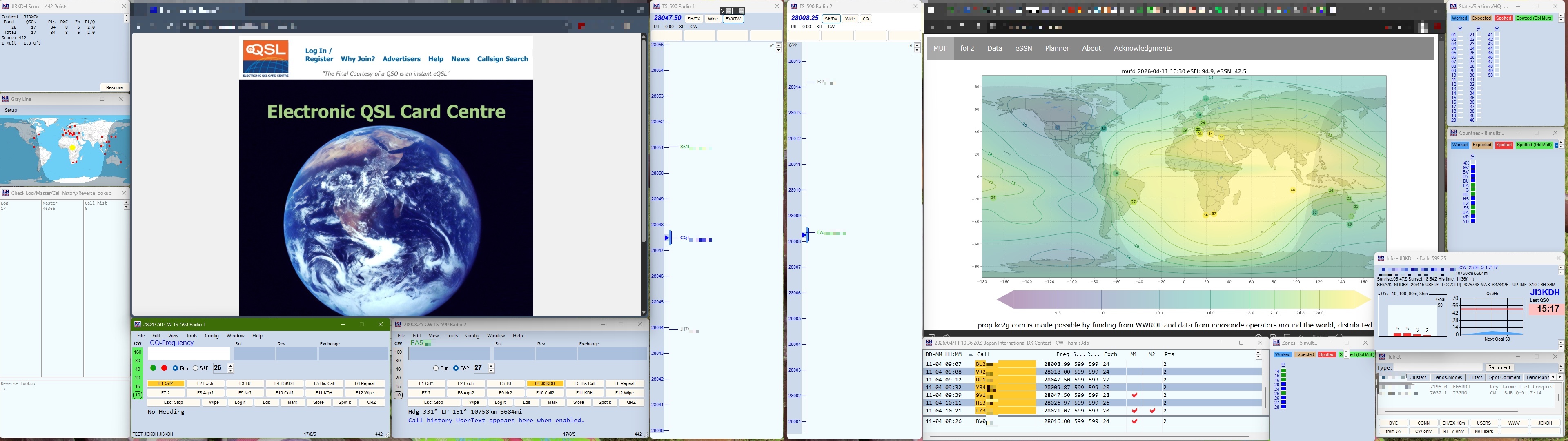 まずは事前準備として、広くなった画面に合わせて各窓を再配置。窓が増えるRTTYを基準に考えてみましたが、とりあえずはこんなところかな。