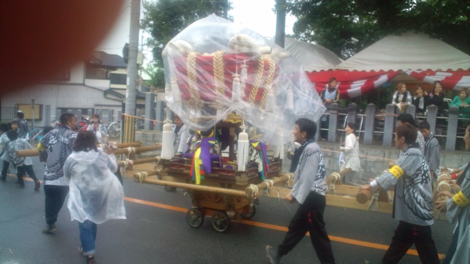 写真はこれまた珍しく「コマ」を入れて運ばれていく小太鼓。慌てて撮ったので左上に指がかかってます(^^; 大太鼓の時はもっとひどい風雨でしたが、いつも通り人力で帰りました。(実は個人的にちょっとしたトラブルがあったんですが、まぁ今のところ大したことになってないのでヤレヤレです)